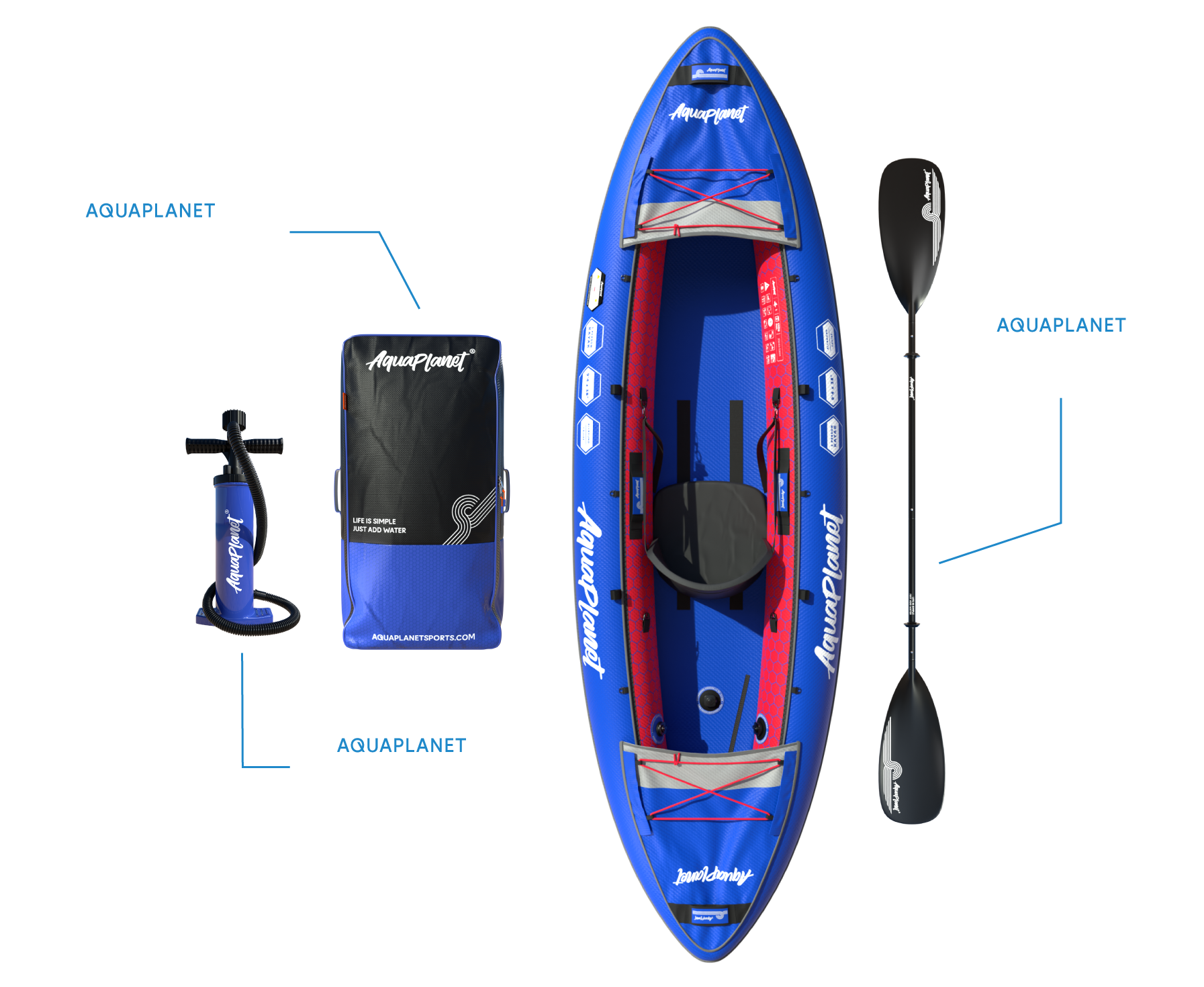 Introducing the latest adition to the Aquaplanet family! Replicating the rigidity of hardshell kayaks, our triple chamber inflatable kayak is perfect for exploration, covering long distances with ease. With its slide in “SUP Style” Dolphin fin, it gives fantastic straight line tracking. The tough, quick-dry polyester outer shell, not only makes the kayak rigid and rugged but also saves pack away time.